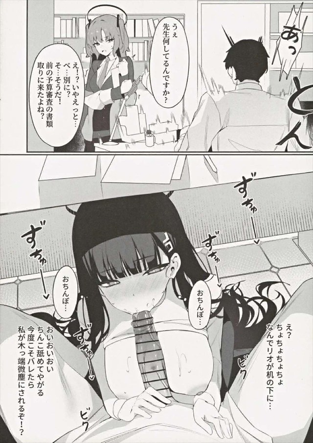 《ブルアカ》性に目覚めたリオが先生の机の下でフェラ&オナニー♪おっぱい丸出しのメイド服で先生を誘って来たので首絞めファックされちゃいましたww