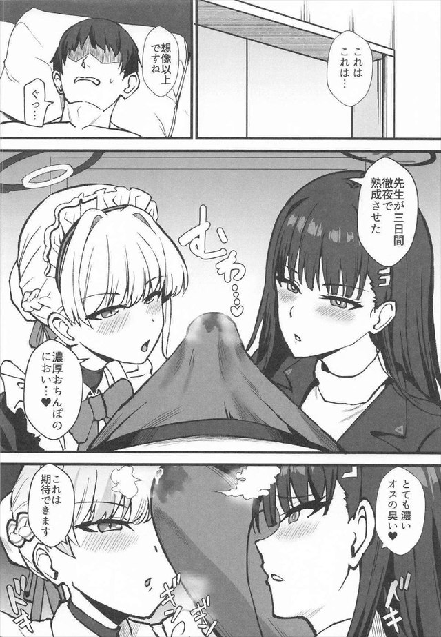 《ブルアカ》淫乱娘のリオとトキが三日間徹夜で熟成させた先生ち〇ぽをご堪能♪チンカスの匂いで興奮したり、愛液を垂らしながら濃厚フェラをしたり・・今回のトキはサポート係です♡