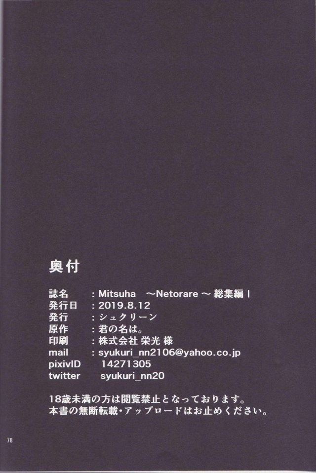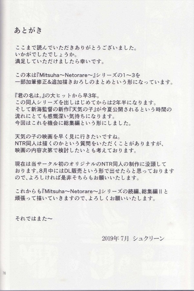《君の名は。》NTR本の良作だと思ってます!それだけにNTRが嫌いな人には厳しいかと!シリーズを追うごとに話が濃密になっていくNTR本!