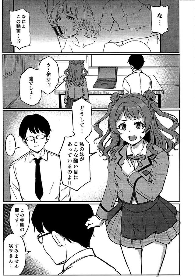 《学マス》権力者達に犯され、調教を受ける佑芽を助けるべく身代わりとなった咲季!狂った権力者から注射を打たれ、幻覚を見ながらだいしゅきホールドで中出しセックス・・