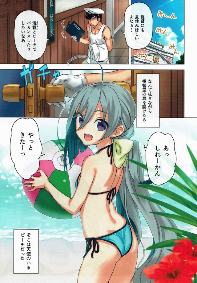 《艦隊これくしょん エロ同人誌》こんなクソ暑い中で仕事なんてやってられっか!と提督が苛立ったタイミングでビキニ清霜が降臨。今日は気分転換にバカンスよ♪