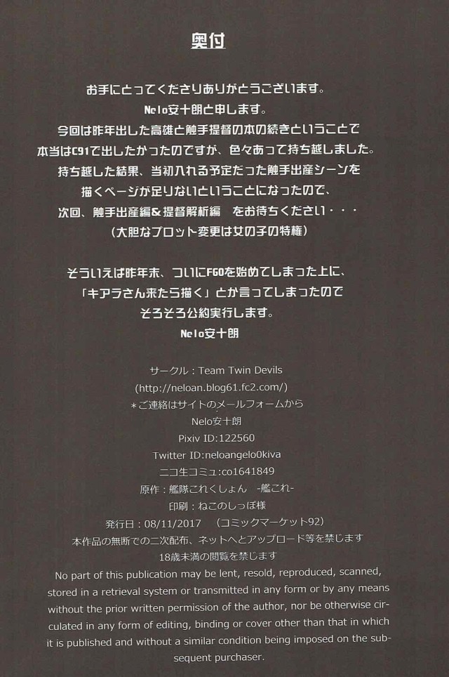 《エロ同人誌 艦隊これくしょん》提督が触手になりぼて腹になるまで高雄をハメまくり失神させ、続いて姉妹の愛宕もハメまくって同じくぼて腹にしてしまうという触手姦好き必見の作品w