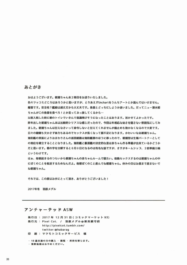 こちらの同人誌が表示されています 《艦隊これくしょん エロ同人誌》朝潮に対潜兵器のテストをしてもらいました…。出ちゃう…お尻の穴から何か出ちゃうぅぅっ!対潜用の爆雷が朝潮のお尻から生まれましたw タグ⇒ 産卵 ちっぱい ロリ イチャラブ 媚薬 2024年10月16日 コメント数:0 お気に入り Myリストを見る! « 投稿順で巡回 » « 一つ前の本へ 一つ後の本へ » « 同一タイトル内で巡回 » « 一つ前の本へ 一つ後の本へ » お気に入り Myリストを見る! ↓の☆をタップ(クリック)するとこの作品に投票出来ます (まだ評価されていません) 【☆1←低 高→☆5】読み込み中... ※タップ(クリック)した瞬間に投票となります。☆の数を間違えないようにして下さいね。 ⇒ランキングを見に行く! [2024年10月16日] この作品に含まれていたタグ 産卵 ちっぱい ロリ イチャラブ 媚薬