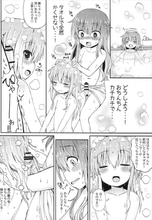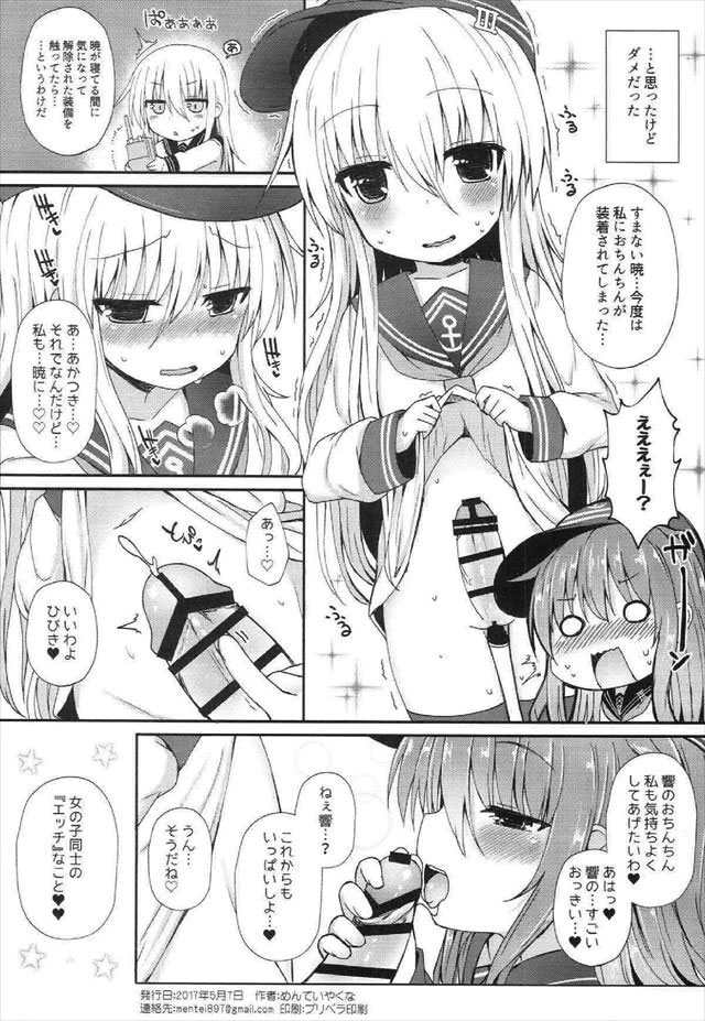 《艦これ》シナリオが完璧です。暁がフタナリになる過程、フタナリになって慌てるくだり、響と問題解決に向かって一生懸命射精する山場。ロリ百合ふたなり本の名作!
