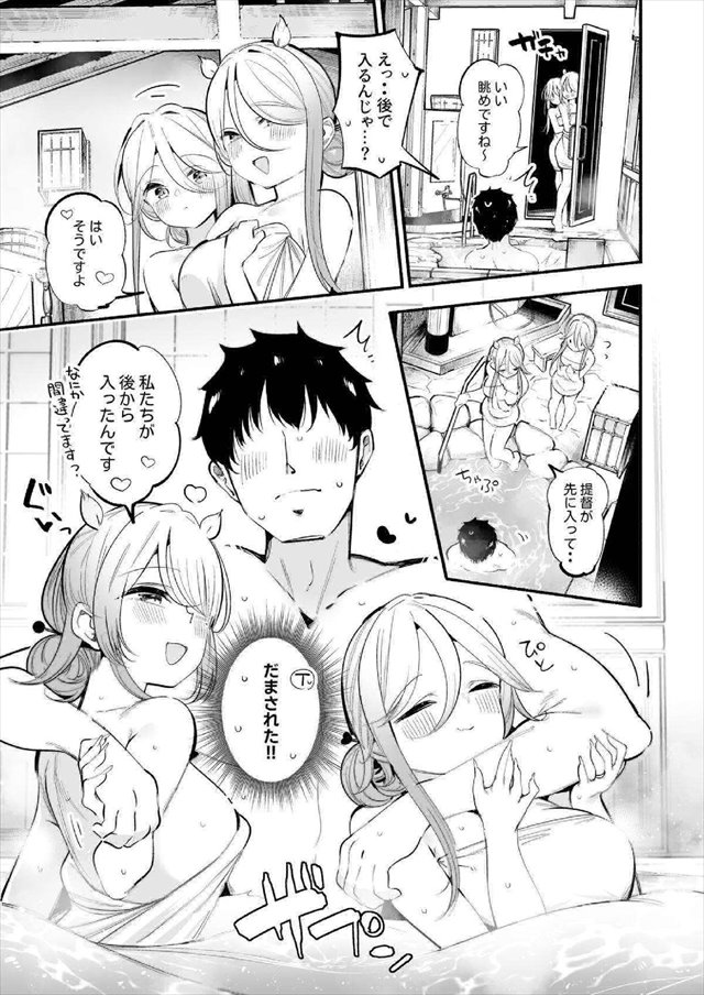 《艦これ》温泉旅館で3Pを楽しもう!海風と山風と提督は個室温泉付きの良い旅館に泊まります。温泉と山風と海風のオマンコサンドイッチを堪能しましょ!