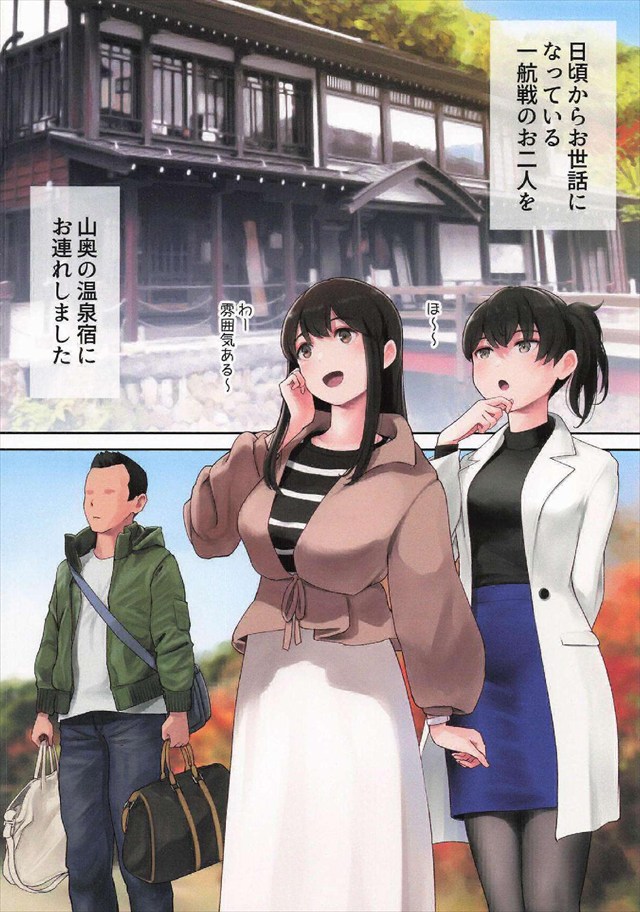 《艦これ》日頃の感謝を込めて赤城と加賀を温泉宿に招待した提督だったけど二人の積極的すぎる行動で犯されまくられちゃう同人誌♪WフェラやWパイズリ、W騎乗と積極的というか淫乱というかww