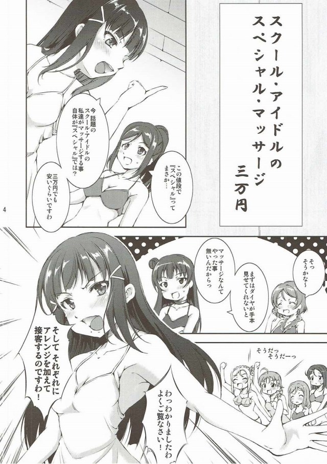《エロ漫画 ラブライブ!》大赤字の海の店を立て直すために黒澤ダイヤ考案のスペシャルマッサージを実施!ダイヤ&ルビィ&曜がそれぞれのSPMを実践プレイw