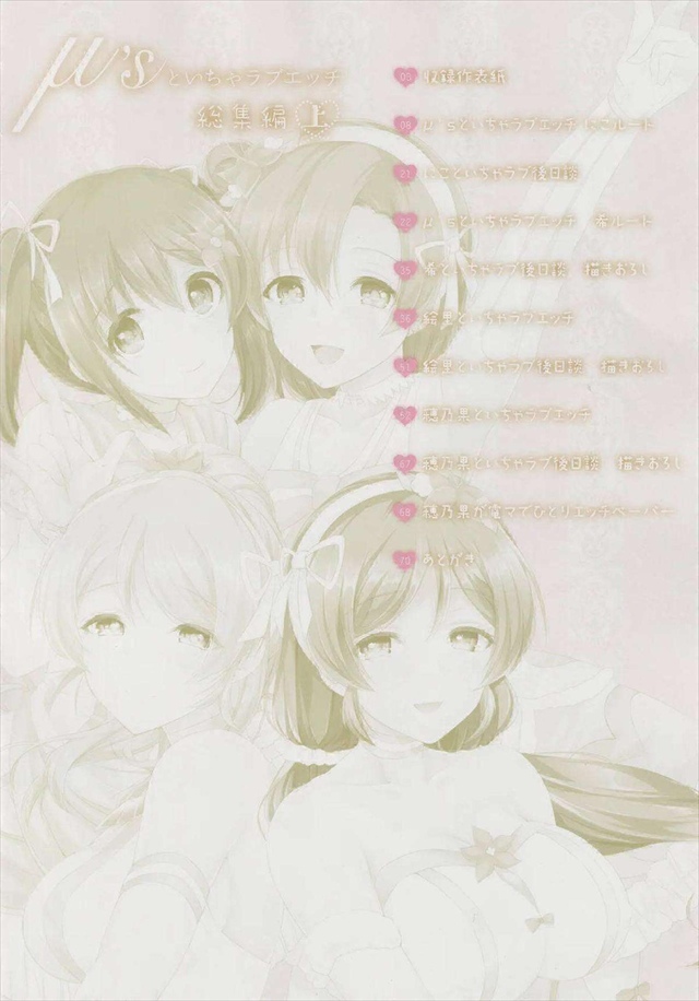 《ラブライブ!》全72ページ5作品収納のμ’s といちゃラブエッチ総集編♪ツンデレにこや甘々な希、押しに弱い絵里や穂乃果のイチャラブエッチや一人オナニー・・全部可愛いしエロいです!ww