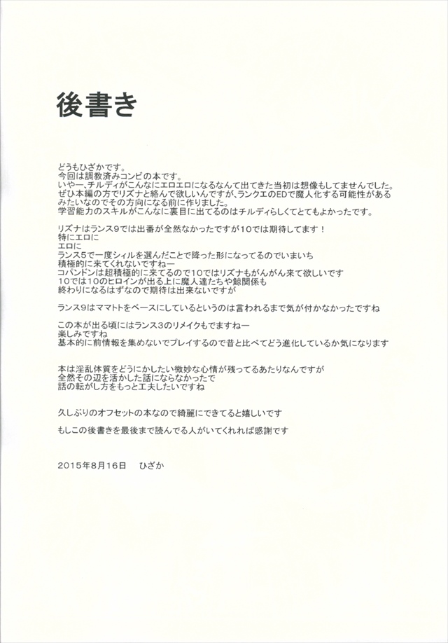 こちらの同人誌が表示されています 【ランス エロ同人誌】ランスに調教されたリズナとチルディがランスの逞しい肉棒にご奉仕乱交セックス タグ⇒ チルディ=シャープ リズナ=ランフビット ロリ 肉便器 乱交 2025年10月1日 コメント数:0 お気に入り Myリストを見る! « 投稿順で巡回 » « 一つ前の本へ 一つ後の本へ » « 同一タイトル内で巡回 » « 一つ前の本へ 一つ後の本へ » お気に入り Myリストを見る! ↓の☆をタップ(クリック)するとこの作品に投票出来ます (まだ評価されていません) 【☆1←低 高→☆5】読み込み中... ※タップ(クリック)した瞬間に投票となります。☆の数を間違えないようにして下さいね。 ⇒ランキングを見に行く! [2025年10月1日] この作品に含まれていたタグ チルディ=シャープ リズナ=ランフビット ロリ 肉便器 乱交