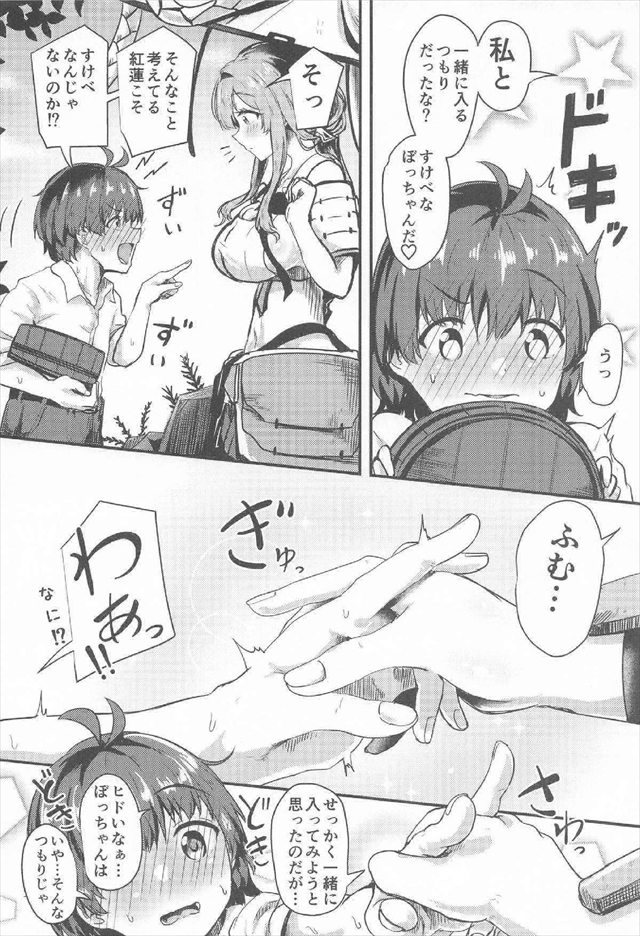 《メガニケ》野外温泉を作ったショタ指揮官と紅蓮がボディーソープでお互いの身体を洗いっこ♪アナル弄りでイっちゃう指揮官は見た目はショタだけどお酒を飲める年齢設定でしたww