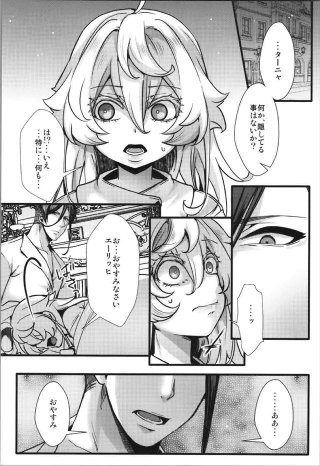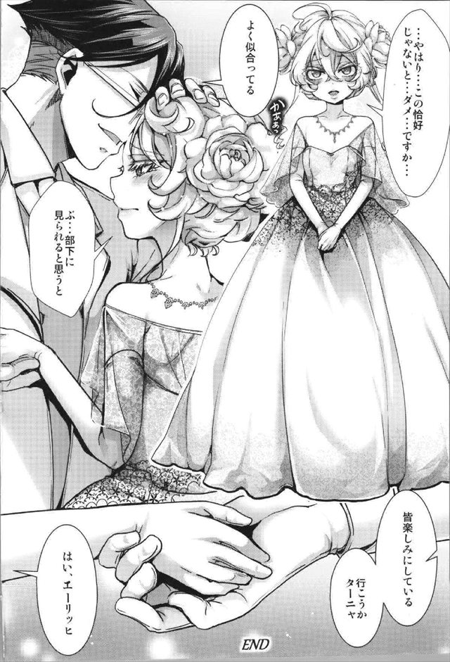 《幼女戦記》生理が来て子供が出来ると発覚したターニャがエーリッヒを意図的に避けるようにしたら拘束されて子作りセックスをメタメタされちゃう同人誌♪最後のウェディングドレス姿が全てを物語ってます♡